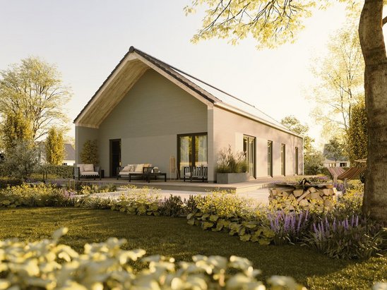 Stufenloses Wohnglück im Winkelbungalow 108: charmantes Design, variabler Grundriss, helle Räume und direkter Zugang zur Terrasse. Jetzt anfragen und das Leben auf einer Ebene genießen!