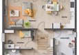 Das Flair 125 ist eines unserer beliebtesten Häuser. Und das zu Recht, denn es ist ein Haus mit besonderer Ausstrahlung. Eine Ausstrahlung, die sich schon beim ersten Blick zeigt: das weitläufige Wohnzimmer mit dem großen Essbereich ist ein absoluter Anziehungspunkt für die ganze Familie und für Gäste. Drei große Fenster machen den Wohnbereich besonders hell und freundlich, der Blick in den Garten rundet die angenehme Atmosphäre ab.