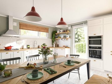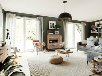 Stadtnahes Wohnen auf 2 Ebenen - Das Flair 152 RE spiegelt mit seinen klaren Linien das urbane Lebensgefühl seiner Bewohner wider. Zentrum des Familienlebens ist das helle und geräumige Wohnzimmer mit gemütlichem Essbereich. Von hier aus können Sie direkt in die offene Küche blicken und schauen, was in den Töpfen köchelt.