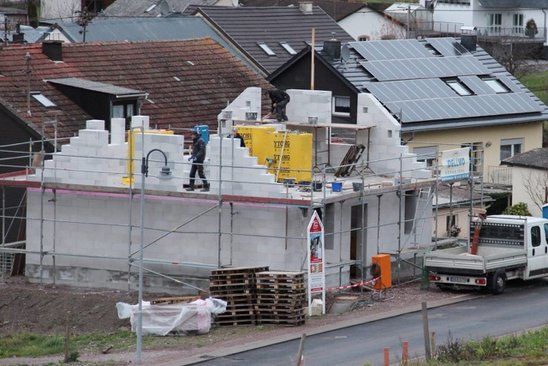 Die Familie wollte unbedingt in dem Ort in der Nähe der Freunde und Bekannten bleiben, da jedoch Baugrundstücke rar sind, haben sie sich nach fertigen Häusern umgesehen und länger gesucht. Freunde und Familie hatten jedoch geraten, dass ein bestehendes Haus saniert werden muss, daher viel teurer ist und es dann immer noch nicht so ist, wie man es möchte. Daher haben sie sich für einen Neubau entschieden. Ein Bekannter hat mit ihnen die Finanzierung besprochen und ihre Bedenken ausgeräumt.